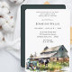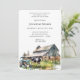 Fête d'anniversaire de ferme pour hommes Invitation avec tracteur vintage, grange et vache près d'un étang. L'invitation idéale pour les amateurs de vie agricole et de plein air. Ajoutez les détails de votre fête avec notre modèle facile.