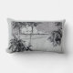 Un oreiller jeté avec une gravure vintage en noir et blanc d'une plage tropicale avec palmiers, nuages moelleux et océan à l'horizon. Cliquez sur Customiser pour ajouter votre nom ou votre message, modifier les couleurs des arrière - plans et plus encore.