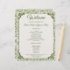 Programme de mariage facile à customiser ! Ajoutez simplement vos infos ! Cliquez ici pour modifier le style ou la taille de la police. Illustration vintage Victorian Style Green Willow Leaf Motif, dessin original de William Morris. Bel choix pour un mariage de printemps de jardin extérieur.