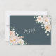 Wedding RSVP cards with vintage style cream, blush and white watercolor flowers, pastel greenery and a navy blue background. Customizable with your wedding details, available in many matching wedding products.