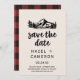 Cette vintage plaid sauvage, sauf la carte de date, est parfaite pour un mariage de montagne. Le design inspiré des montagnes rocheuses présente une scène de montagne, de lac et de forêt dessinée à la main avec un fond de buffle pour une atmosphère cabine confortable.