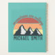 Vintage pastels montagnes appellent monogram design personnalisable. Dessin d'une montagne enneigée avec des lignes pastel en jaune, orange et rouge représentant le ciel couché de soleil. Au-dessus du ciel circulaire se trouve un dicton que les montagnes appellent et sous les montagnes il y a un monogramme où vous pouvez ajouter votre nom. Parfait pour les amoureux de la nature et de la randonnée.