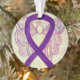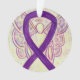 L'ornement de fête de l'ange gardien présente la peinture d'un ange ruban de conscience violet. Sensibilisation violette L'art ruban d'ange peut être customisé avec des messages personnalisés pour faire des ornements de grande cause ou des pendentifs pour des collecteurs de fonds, des cadeaux de Noël ou de vacances de sensibilisation, ou d'autres événements ou occasions spéciales.
