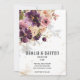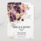 Bouquet floral d'aquarelle violet et mauve, moderne et élégant, à l'ombre douce sur l'invitation, éclaboussant d'or et d'éléments, avec vos prénoms dans une police moderne avec une date mariage numérique en dessous et une petite police pour les détails. Cette invitation luxueuse violet violet et mauve est adaptée à toutes les occasions.