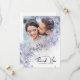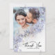 Un élégant Carte de remerciements de mariage alliant votre photo mariage personnelle à des bordures délicates de violet et de fleurs lilas. Le cadre botanique transparent et la calligraphie raffinée créent un souvenir luxueux mais chaleureux. Parfait pour les mariages de printemps, de destination ou de violet, cette carte équilibre beauté et gratitude dans un design intemporel.