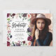Carte de félicitations aux diplômés en photo florale rose bordeaux. Aquarelle fleurie, feuillage et fruits peints à la main. Partie d'une collection