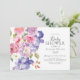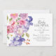 Invitation baby shower floral avec de magnifiques violets violets et fleurs roses peints à la main. Retournez notre invitation pour voir un retour de coordination pour une touche spéciale supplémentaire.