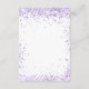 Un programme de mariage moderne et élégant, chronologie. Un arrière - plan blanc décoré de confettis violets, couleur lavande. Personnalisez et ajoutez vos noms et les détails du mariage. Lettres de couleur noire. Si vous avez plus de texte, il est possible de réduire l'espace de ligne.