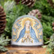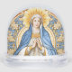 Virgin Mary in Blues and Golds within a flower frame Christmas snow globe.