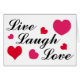 Live, Laugh, Love design avec décoration de coeur rouge et rose