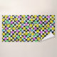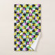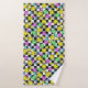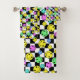 mignon visage émoji multicolore souriant sur plateau de serviettes de bain à motifs de checker