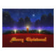 Scène de Noël en 3D créée en Vue, avec des bougies posées sur le rouge devant une guirlande de pins, rehaussées de rouge et d'or. Dans l'arrière - plan enneigé sont des sapins bleu-vert contre un ciel fractal tourbillonnant parsemé d'étoiles. Une étoile étincelante unique domine le ciel nocturne. Devant les décorations de vacances se trouve un salut Joyeux Noël doré.