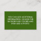 Carte de visite, taille : États-Unis : 8.9 cm x 5.1 cm, papier : Standard Semi-brillant, coins : Carré