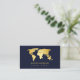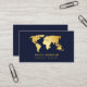 Faites une déclaration audacieuse avec ce carte de visite d'agence de voyage moderne avec un arrière - plan bleu marine et élégante carte du monde or. Parfait pour les agents de voyages, les planificateurs de voyages, Personnalisez avec votre nom et votre titre pour créer une première impression raffinée et élégante.