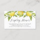 Carte de douche au citron Festive avec citrons aquarelles et guirlande verdoyante avec un motif citron assorti. Cette carte de douche à thème citron est parfaite pour les mariages d'été, baby showers, douches nuptiales et bien plus encore.