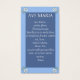 Une carte de prière avec la traduction latine de Hail Mary. Le dos de la carte de prière est la peinture de Sandro Botticelli de Vierge Marie et de l'enfant Christ.