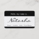 Simple, Simple, Moderne, Noir & Blanc, Deux Côtés, Arrondi, Bonjour Mon Nom Est, Nametag, Carte de visite Professionnel idéal pour une Designer, Décoratrice Intérieure, Cosmetologue, Coiffeur, Styliste de cheveux, Responsable de projet, Planificateur d'événements, Mariage, Consultant en Relations Publiques, Agent Professionnel, Dentiste, Psychologue, Psychiatre, Réalteur ou Réel Avocat, Avocat, Avocat, Paralégal, Chiropracteur, Nettoyeur, Vétérinaire, Interprète & Traducteur, Représentant / Rep, Ménagère, Travailleur social et de nombreux autres professionnels. Vous pouvez modifier le texte en police, couleur, taille et emplacement en cliquant sur le bouton bleu "CUSTOMISER IT". Veuillez noter que les noms longs d'entreprises nécessiteront un redimensionnement. Merci de votre visite.