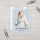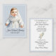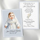 Une carte simple et élégante pour le baptême d'un bébé, avec une douce illustration d'un petit personnage dans sa robe baptismale sur un arrière - plan bleu doux. L'illustration est entièrement personnalisable et peut facilement être remplacée par une photo de votre choix. Ces cartes font de belles faveurs de baptême et de mémoire sincère pour vos invités.