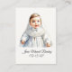 Une carte simple et élégante pour le baptême d'un petit garçon, avec une douce illustration d'un petit dans sa robe baptismale. L'illustration est entièrement personnalisable et peut facilement être remplacée par une photo de votre choix. Ces cartes font de belles faveurs de baptême et de mémoire sincère pour vos invités.