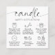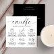 Carte moderne Candle Care Card avec police de script élégante et icônes de soins aux bougies. Ces fiches d'instructions minimales sur la sécurité des bougies en noir et blanc comprennent les informations les plus importantes sur l'entretien des bougies ainsi qu'une note de remerciement sur le dos avec espace pour votre logo et les détails d'affaires. L'ajout parfait à votre conception d'emballage de bougie. Important ! Vérifiez deux fois tout le contenu pour vous assurer qu'il est conforme à vos règlements locaux. Le texte de l'espace réservé n'est qu'un guide.