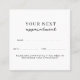 Une belle façon de réserver votre prochain rendez-vous à vos clients avec cette carte professionnelle de rendez-vous professionnel en noir blanc. La carte de rendez-vous client peut être personnalisée pour votre texte, le code QR, le gestionnaire de médias sociaux et les détails de l'entreprise.