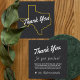 Vous pouvez customiser le texte sur cette carte de marketing de remerciement client. Les propriétaires d'entreprises du Texas peuvent se connecter avec vos clients avec nos cartes "Merci pour votre achat" personnalisées qui présentent le contour emblématique du Texas. Parfait pour faire de chaque achat une opportunité d'obtenir une audience de médias sociaux. Que vous dirigiez une boutique ou un grand détaillant, nos cartes personnalisables offrent une carte boîtier facile qui permet aux clients de revenir. Commandez dès aujourd'hui une carte d'emballage texane pour carte d'insertion !