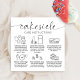 Carte de soins moderne Cakesicles avec police de script et icônes de soins élégantes. Cette carte d'entretien et d'entreposage minimes pour les pâtisseries en noir et blanc comprend les informations les plus importantes sur les soins pour les sucettes de gâteau, une note de remerciement et de l'espace pour votre logo de boulangerie et les coordonnées. L'ajout parfait à votre conception d'emballage de boulangerie cakesicle.