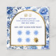 Visite Carré Élégante chinoiserie fleurs bleues carte de fidéli