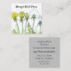 Un joli carte de visite botanique avec des illustrations de pandelions à différents stades de croissance dessinés avec de l'encre et un crayon coloré. Au verso, une teinte grise chaleureuse. Customisez le texte correspondant à vos détails professionnels.