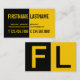 Conception contemporaine d'une carte attirante de profil d'affaires de contraste audacieux en association de noir et de jaune. C'est conception bilatérale d'impression où tout est écrit de la partie antérieure. La partie gauche avant du carte de visite est noire avec le texte jaune là-dessus. La bonne partie est juste l'opposée, jaune avec le texte noir là-dessus. L'arrière est également divisé sur la moitié, où la partie gauche est noire et la bonne partie est jaune, tous les deux avec de grandes lettres de monogramme. Conception très audacieuse, moderne, professionnelle et attirante qui fera sure une impression sur votre client et se tiendra d'autres cartes de visite de leur paquet de cartes de visite.
