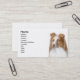 Carte de visite, taille : États-Unis : 8.9 cm x 5.1 cm, papier : Standard Semi-brillant, coins : Carré