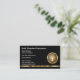Cartes de visite classiques d'assurance conçus avec numériquement éléments de conception de tonalité or imprimé et un emblème d'arbre de vie dans un schéma classique de carte de visite que vous pouvez utiliser comme votre carte de visite à succès. Travaille pour un agent d'assurance, un fournisseur, un bureau Médicale ou un centre de soins pour personnes âgées.