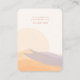 Cette carte de bijoux chaleureuse et sereine présente un paysage désertique minimaliste avec des dunes en couches dans des tons doux de pêche, de lavande et d'or, dressées contre un grand soleil couchant. La palette de couleurs apaisantes et les formes abstraites créent un décor de terre moderne, parfait pour mettre en valeur des boucles d'oreilles, des colliers ou des accessoires faits main. Le texte personnalisable à l'avant et à l'arrière permet d'accéder à votre marque, à votre site Web et à vos coordonnées. Un choix idéal pour l'emballage de bijoux boho, d'inspiration nature ou artisanal.