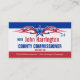 Campagne politique - Commissaire de comté carte de visite d'élection en rouge, blanc et bleu accrocheur! Facile à personnaliser ou à customiser.