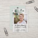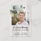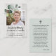 Impression sur bois léger rustique avec eucalyptus, votre photo préférée et écriture et typographie classiques sont utilisées. Au dos de la carte se trouve la prière qui peut être personnalisée.