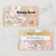 Une élégante beauté moderne et élégante Cheveux et maquillage artiste de style carte de crédit carte de visite avec une typographie de police de script moderne sur une agate de géode or, rose, corail marbre et or métal glam arrière - plan tendance. tout le texte est personnalisable, ajoutez vos médias sociaux. Avec fausse bande d'or. Ajoutez votre logo, votre monogramme et votre code QR.