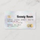 Un élégant carte de visite de style de carte de crédit peintre de coiffure et maquillage moderne avec une typographie de police de script moderne sur un chic nacre irisé perle et or métal fil glam arrière - plan tendance. tout le texte est personnalisable, ajoutez vos médias sociaux. Avec fausse bande d'or. Ajoutez votre logo, votre monogramme et votre code QR.