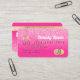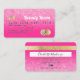 Un élégant carte de visite de style de carte de crédit peintre de coiffure et de maquillage moderne avec une typographie de police de script moderne sur une chic fausse parties scintillant rose ombre dégradé et glam brillant neon rose arrière - plan tendance. tout le texte est personnalisable, ajoutez vos médias sociaux. Avec fausse bande d'or. Ajoutez votre logo, votre monogramme et votre code QR.