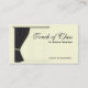 Carte de visite personnalisable utile pour les dessinateurs d'intérieurs, la couture faite sur commande, le service de décoration à la maison ou le conseiller. Cardez les caractéristiques un panneau et une tige noirs de draperie au-dessus d'un contour de fenêtre sur un arrière - plan en ivoire. Tout le texte est editable. Ajoutez plus de texte, choisissez votre propres police, couleur et taille. Texte editable supplémentaire sur le dos pour plus d'information.