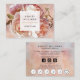 Coordonnées avec le ROSE LUMINEUX & Peony Elegant Floral Carte de visite moderne par Anastasia Designs. Cette carte de fidélité salon est conçue après la 5ème visite pour recevoir une offre spéciale, ou être gratuit. Il présente un bouquet de roses et de pivoines lumineuses, sur un arrière - plan d'aquarelle rose et bleu pâle, Le texte est posé sur une couche de texte blanc, qui est bordé par un mince trait de fausse feuille d'or, et comporte votre nom et "Carte de fidélité", avec tous les poinçons de fidélité sur le dos, ainsi que des informations de contact d'affaires, sur un arrière - plan rose pâle assorti. Créé pour les salons de fougères, les techniciens de fougères, les experts de l'extension de fougères, et peut également être utilisé par les salons d'ongles et les techniciens de clous, ou les salons de cheveux et les stylistes de cheveux. Voir la collection complète ici : https://www.zazzle.com/collections/modern_botanical_pink_rose_peony_business-119075828735039901 Copyright Anastasia Designs, tous droits réservés.
