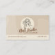 Le design est unique, avec un arrière - plan beige et des couleurs vives et pastel. Il y a une illustration dessinée à la main d'une femme dans l'arrière - plan, ainsi que l'information de l'entreprise.
