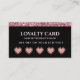 Elégante carte de fidélité salon de beauté avec un arrière - plan noir moderne et détails de parties scintillant or rose pétillant. Conçue avec des timbres en forme de coeur, cette carte récompense les clients avec 30% de réduction sur leur 6e visite. Parfait pour les salons de cheveux, les maquilleurs, les bars à ongles ou les spas de beauté qui cherchent à ajouter une touche élégante à leur programme de fidélité client.