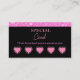 Faites revenir vos clients avec cette carte de fidélité de Parties scintillant rose glamour, idéale pour les entreprises de beauté modernes. Doté d'un design chic en faux parties scintillant et d'une disposition propre et personnalisable, cette carte ajoute une touche de style à chaque rendez-vous. Idéal pour les techniciens en ongles, les artistes fouetteurs, les coiffeurs et les propriétaires de salon de beauté, il comprend des sections punch modifiables pour récompenser les visites répétées avec des remises ou des cadeaux. Que vous offriez un service gratuit après 6 visites ou des avantages VIP exclusifs, cette carte est le moyen idéal de fidéliser — et de garder votre marque brillante.