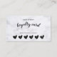 Simple et chic, créez votre propre carte de fidélité de client avec du ce marbre blanc avec le modèle noir de coeurs. Comporte cinq coeurs pour poinçonner où le client reçoit des cinquante pour cent outre de la remise lors de leur sixième visite. Lisse et élégant, grand pour tous les spas, salons, artiste d'ongle, maquilleur, artiste d'extension de cil, ou n'importe quel autre type service a rapporté la société ou le professionnel d'industrie.