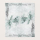Une forêt de pins de l'Est, peinte en aquarelle, avec des tiges d'épinette bleue au-dessus d'une tempête de neige en hiver, avec vos noms de famille et l'année imprimée le long du fond.