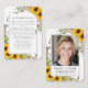 Visite Carte de poème commémorative Sunflower Photo Funer