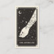 Ce carte de visite est décoré dans un style de carte tarot dans une palette de couleurs noir et crème. L'illustration montre un bras avec un tatouage de serpent entouré d'étoiles scintillantes. Ce serait parfait pour tout artiste de tatouage ou studio de tatouage qui préfère un modèle alternatif de carte de post-soins auto donner à ses clients.