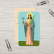 Cette belle carte de prière présente une illustration de St. Barbara. Saint Barbara devint la patronne des artilleurs. "Elle est aussi traditionnellement le mécène des armers, des militaires, des ingénieurs, des artilleurs, des mineurs et de toute autre personne qui travaillait avec des canons et des explosifs. Elle est invoquée contre le tonnerre et la foudre et tous les accidents résultant d'explosions de poudre à canon. Elle est vénérée par les catholiques qui courent le danger d'une mort soudaine et violente au travail."- Brad Bockey, potomacisee.org. Sur le dos est une prière. Crédit photo : Philip K. Profitez de votre nouvelle carte de prière à St Barbara!