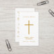Dimensions cartes de visite : 3,5 po x 2,0 po. Cette simple carte de prière commémorative peut être donnée en souvenir lors d'une célébration de la vie ou d'un service funéraire ou envoyée en hommage spécial à ceux qui n'ont pas pu y assister. Le design comprend une simple croix d'or avec une typographie de script d'or offerte. Personnalisez cette carte avec le nom de votre être aimé, les dates et votre choix de prière ou de poème sur le dos. Facile à customiser.
