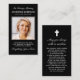 La douleur du deuil s'amplifie lorsque quelqu'un est pris trop tôt, laissant derrière lui une vie de rêves, d'aspirations et de souvenirs. Cette simple carte de prière funéraire moderne comporte une photo de la personne dont vous vous souvenez, un poème qui dit "votre présence nous manque, votre mémoire que nous chérissons, vous aimons toujours, vous oubliant jamais", avec leur nom, et les années vécues. Le verso de la carte comprend un poème ou une prière religieuse qui peut être customisée à la volonté de la famille. Cette carte réfléchie honore la vie d'un être cher de manière significative, tout en procurant du confort à la famille et aux amis.